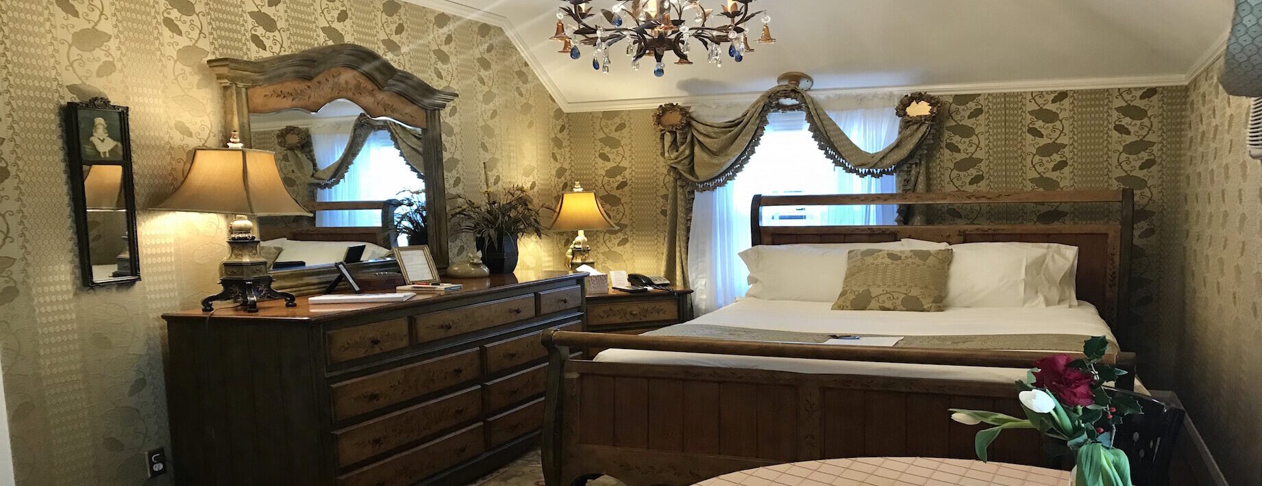 All bed and breakfast room accommodations include a full breakfast served from a menu the next morning. Sip your morning coffee beside the dining room electric fireplace, in the garden atrium or in the privacy of your guest room. To view our breakfast menus, click here.