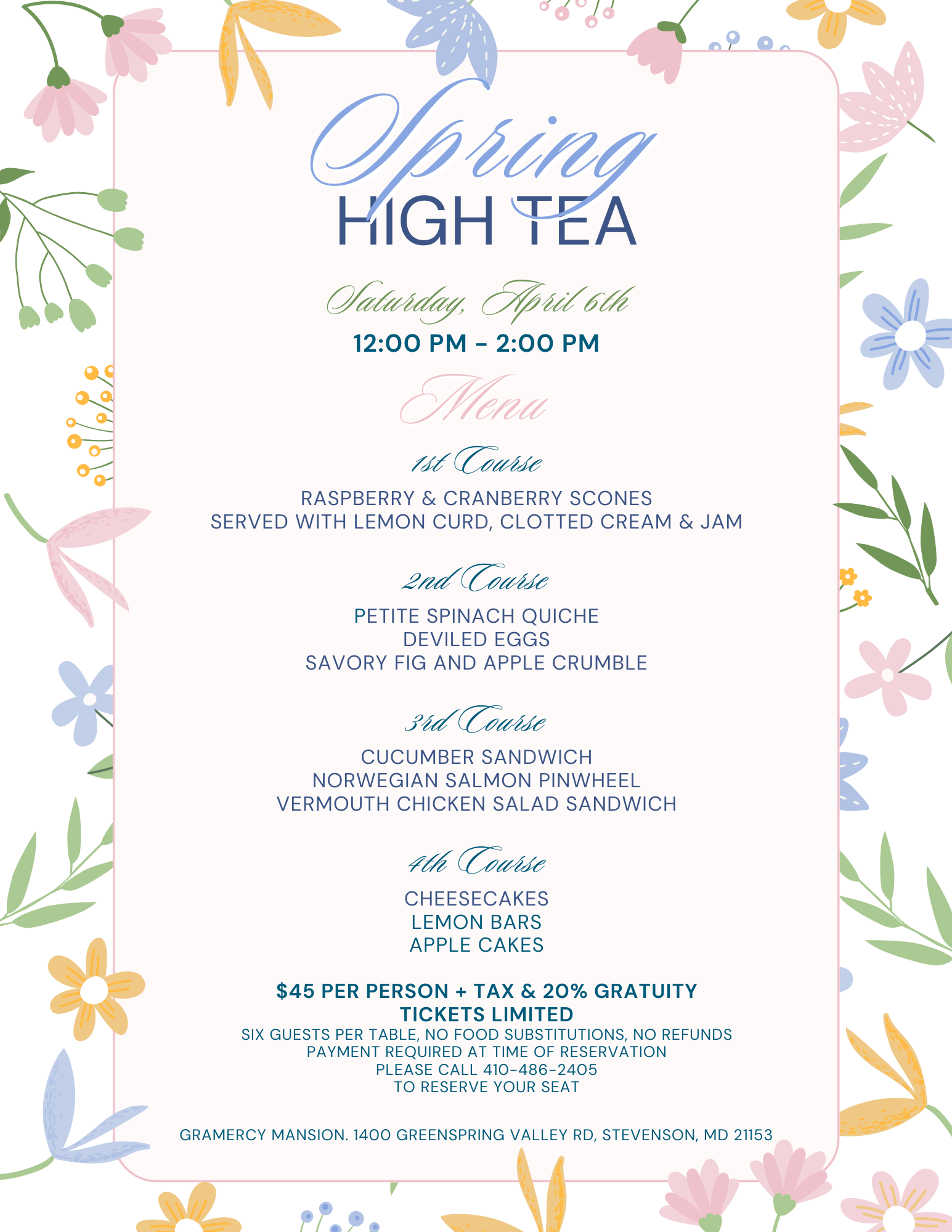 « Previous Spring-High-Tea-Flyer-with-Menu This entry was posted on Thursday, March 7th, 2024 at 6:51 pm and is filed under . You can follow any responses to this entry through the RSS 2.0 feed. Both comments and pings are currently closed.
